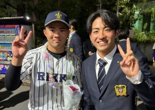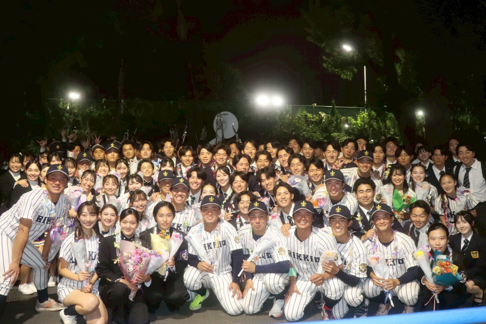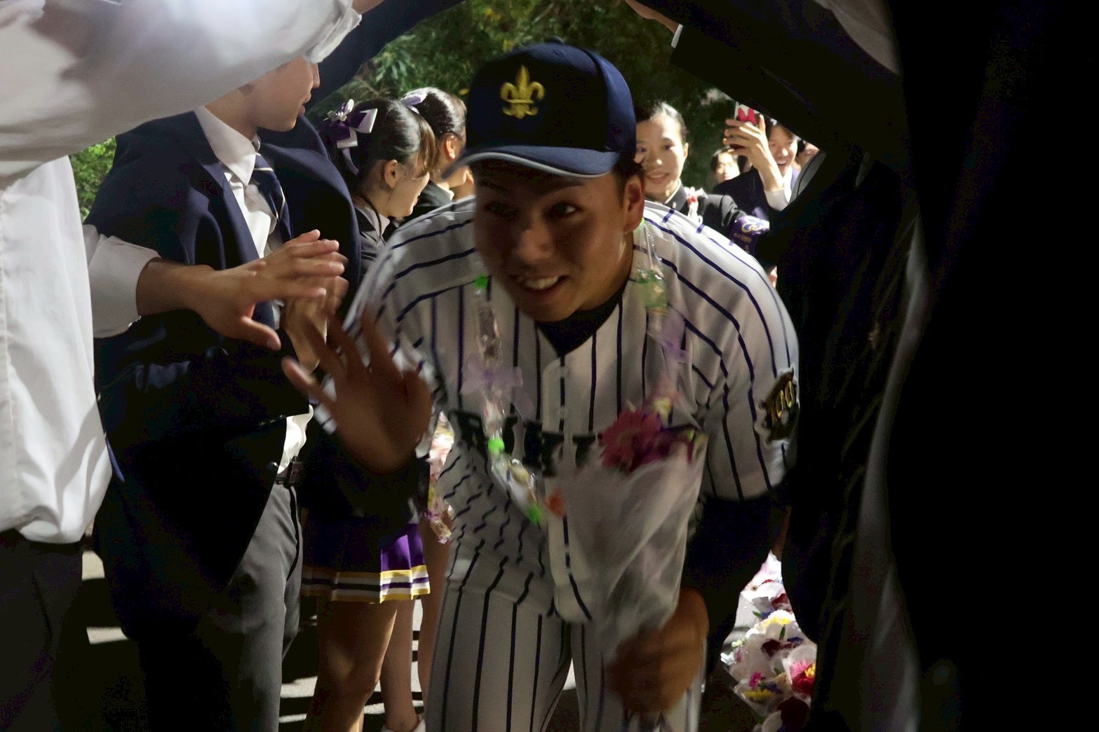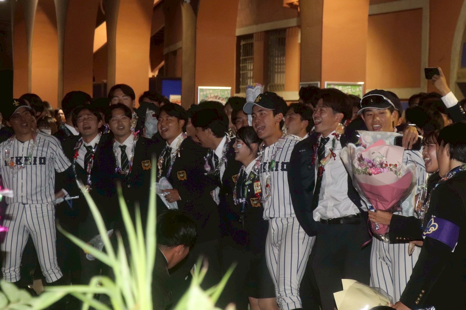 10月27日(月)の明治大学戦後、明治神宮野球場一塁側アーケード下にて、応援団との引退セレモニーが開催されました。