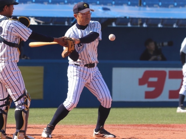 ノックを打つ小倉大貴学生コーチチーフ(4年)